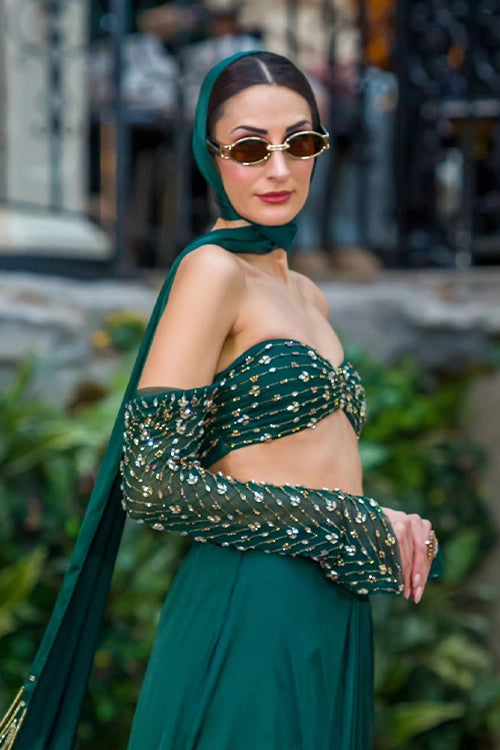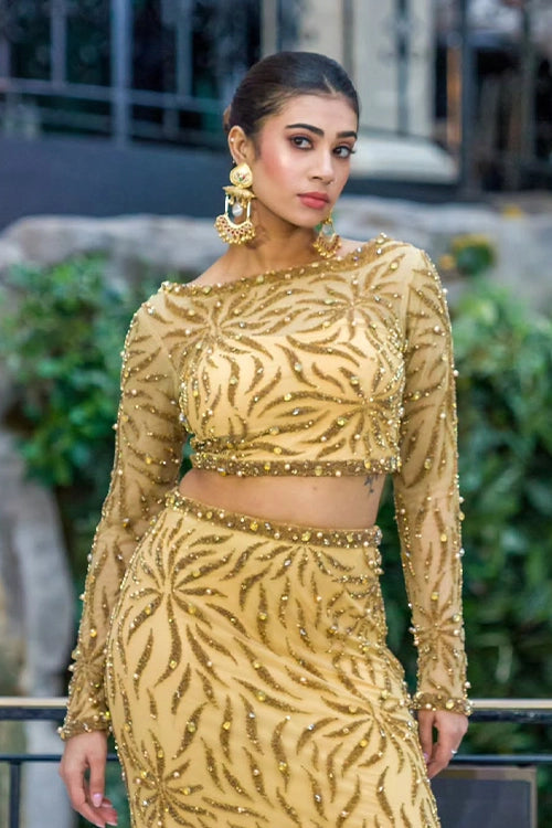 Midnight Blue Hand-Embellished Crop Top and Skirt Set