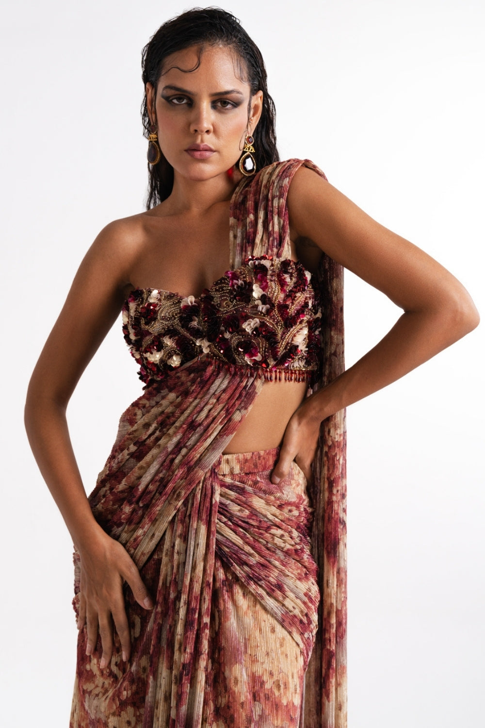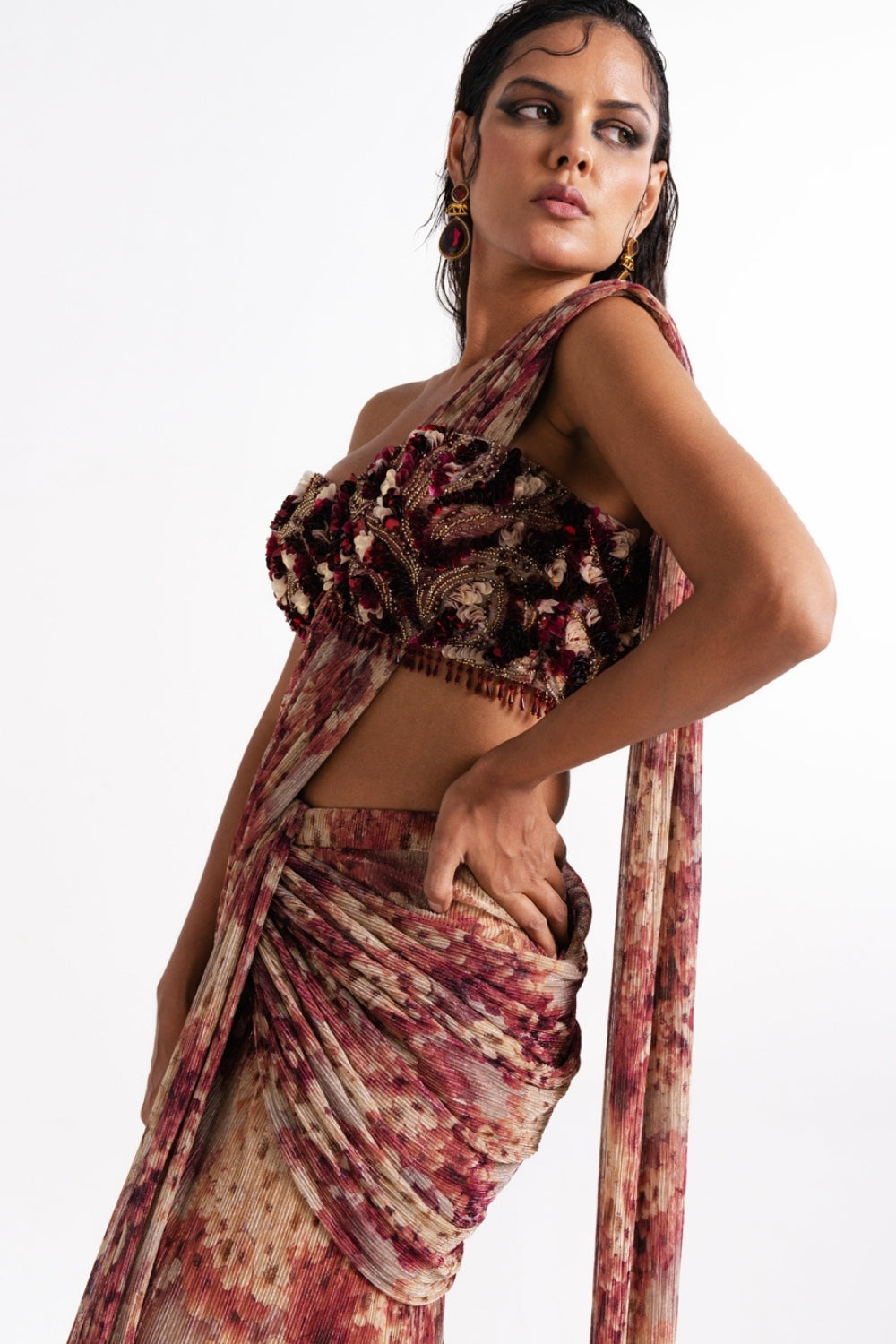 Embrace timeless elegance with our Floral Pre-Draped Saree Set, designed for the modern woman who values both style and convenience. This ready-to-wear saree features a delicate floral pattern throughout, paired with a stunning embellished blouse that adds a touch of glamour. The pre-pleated drape effortlessly wraps around, providing a perfect fit without the hassle of traditional saree draping. Complete with a flowing pallu that cascades gracefully from the shoulder, this ensemble is perfect for weddings, festive events, or any special occasion. Feel beautiful and confident with this contemporary take on a classic look.